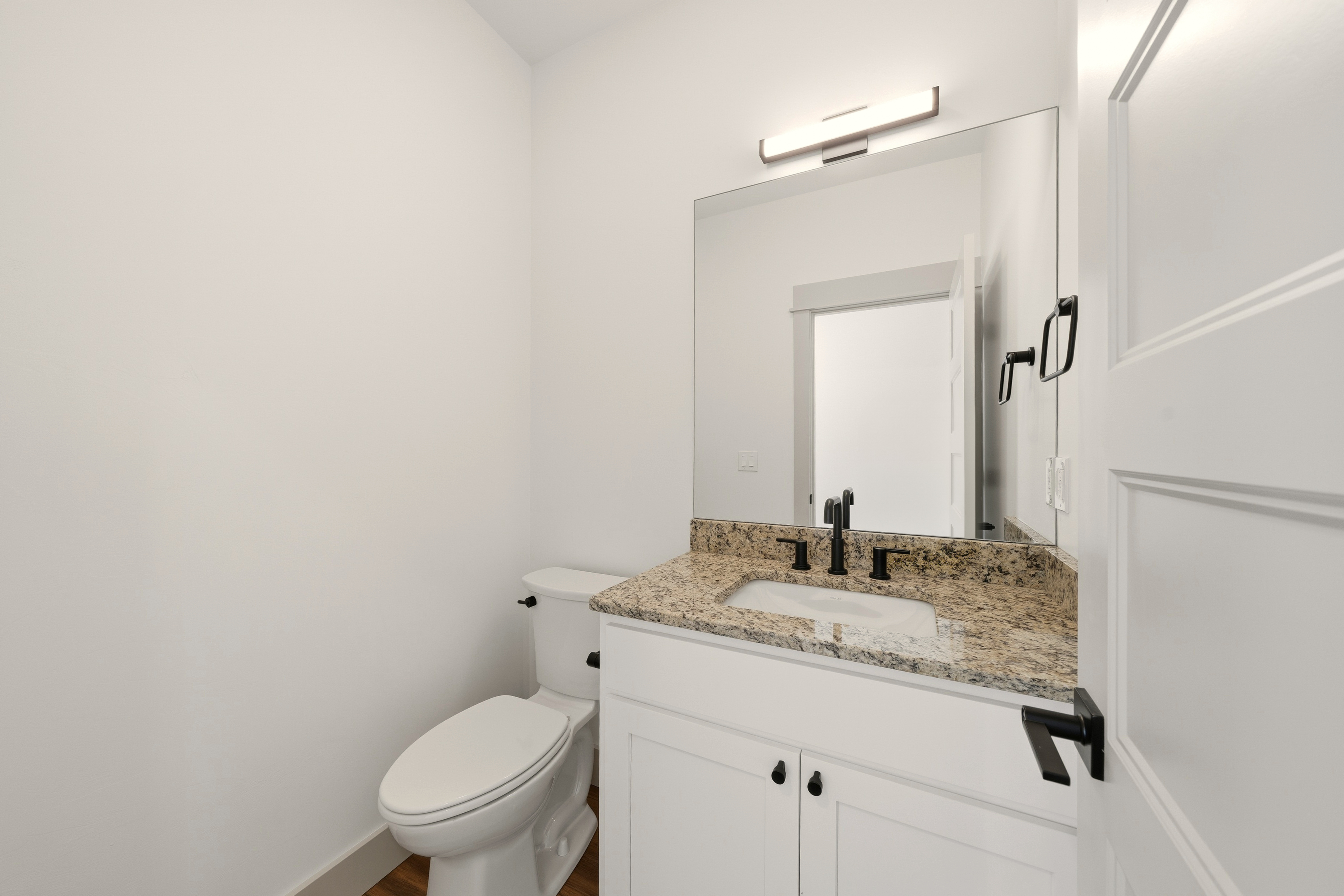 The primary suite is your private retreat with a walk-in closet and a beautifully designed ensuite bathroom. Two additional bedrooms, a half bath, and a laundry room complete the functional floor plan.